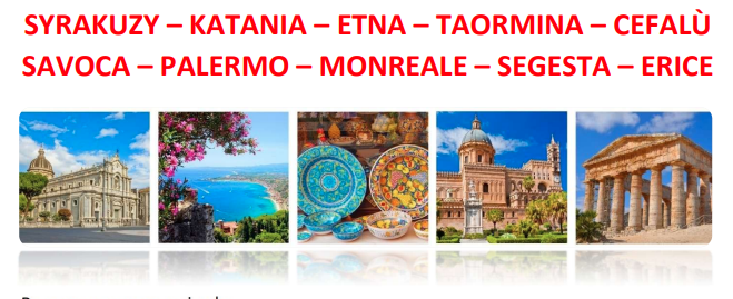 SYCYLIA - SYRAKUZY – KATANIA – ETNA – TAORMINA – CEFALÙ SAVOCA – PALERMO – MONREALE – SEGESTA – ERICE. Termin – 7-14.09.2025. Przedstawiamy ramowy program wyjazdu.