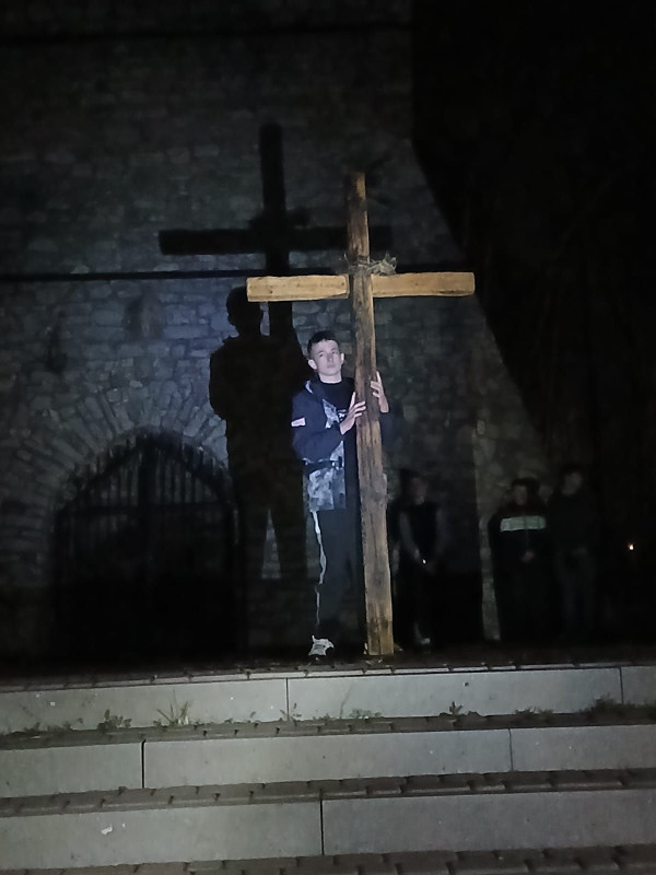 Wielki Czwartek – zaraz po Wieczerzy Jezus wychodzi z uczniami. Najpierw modli się w ogrodzie, tam zostaje aresztowany, następnie prowadzą Go od Annasza do Kajfasza, potem do Piłata Heroda i znów do Piłata. Chcemy towarzyszyć mu w tej drodze. Chcemy być z nim by poczuć jego opuszczenie i samotność. Rozpoczynamy w kościele czuwając przy ciemnicy, a następnie o 21.00 wyruszamy w mrok nocy rozważając kolejne wydarzenia ciemnej nocy Jezusa. 13 km, 7 przystanków. W milczeniu, samotnie za Jezusem. Poniżej rozważania, wkrótce także w wersji audio, a na parafialnym facebook mapka z trasą